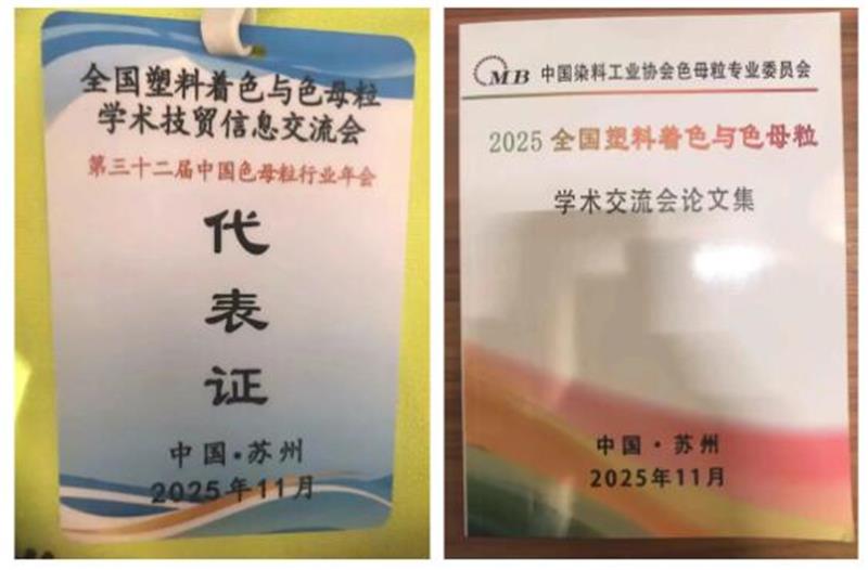 时值初冬,苏州寒意渐浓,但行业创新的热度却持续攀升。2025 年作为 “十四五” 规划收官与 “十五五” 规划谋篇布局的关键节点,11月10-12日,由中国染料工业协会色母粒专业委员会主办的 “2025 年全国塑料着色与色母粒学术、技贸信息交流会” 暨 “第三十二届中国色母粒行业年会” 在江苏苏州国际会议酒店隆重举行。浙江金淳高分子材料有限公司受邀出席,与来自全国各地的色母粒企业代表、技术专家及产业链伙伴齐聚一堂,共话行业创新方向,共绘未来发展蓝图。