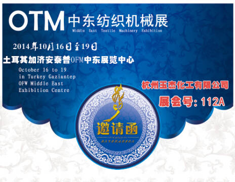 伴随着刚刚结束的2014年中国国际产业用纺织品及非织造布展览会的余温,玉杰即将踏上新的旅程!OTM 中东纺织机械展将于2014年10月16-19日在加济安泰普中东国际展览中心隆重启动。再出发,创卓越,玉杰和你相约土耳其!